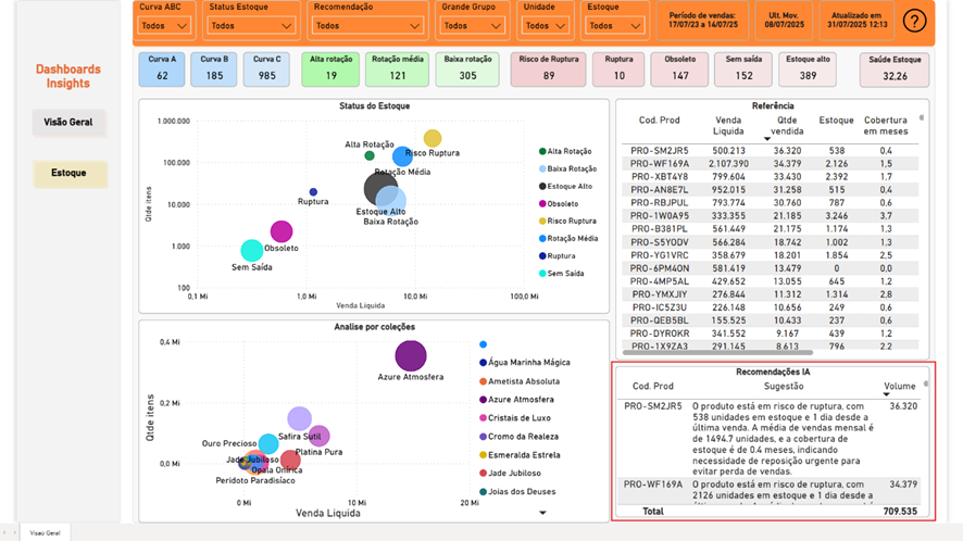 Como nos demais produtos, estamos desenvolvendo nosso próprio modelo de IA, voltado para o mercado joalheiro, com o treinamento de LLM´s que possam subsidiar as descobertas e sugestões apresentadas, a função INSIGHTS.